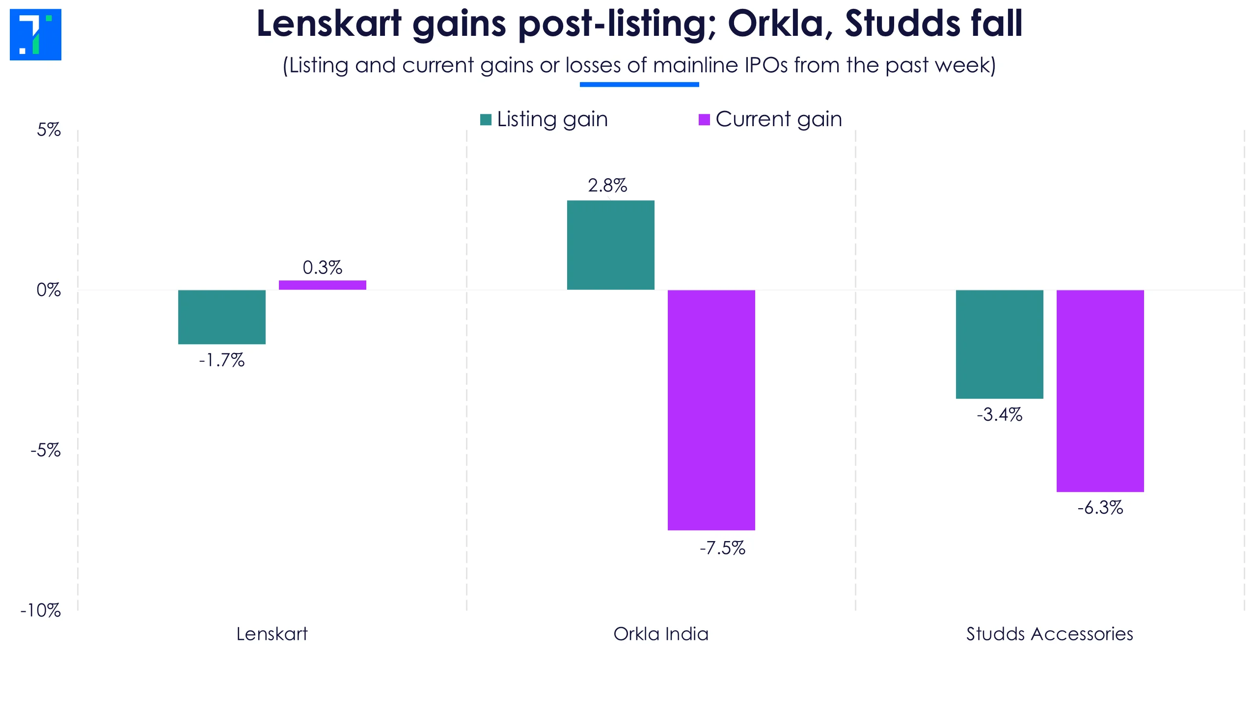 Last week saw three mainline listings: Lenskart, Orkla India and Studds Accessories.