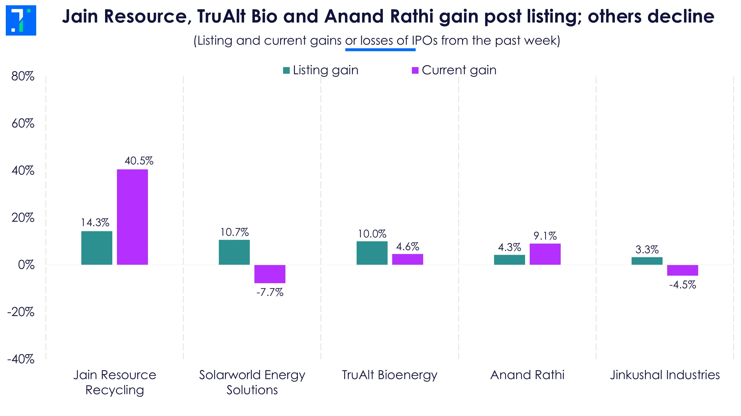 Jain Resource, TruAlt Bio and Anand Rathi gain post listing; others decline