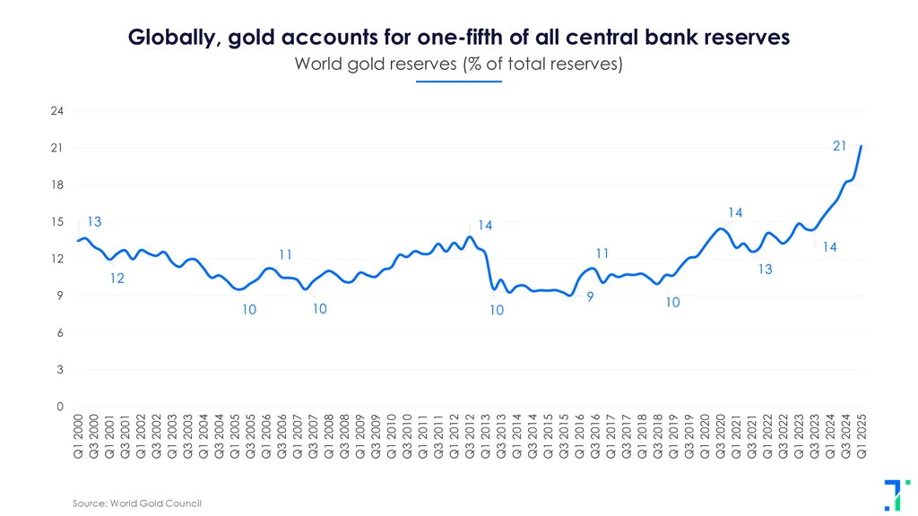 Even at record prices, gold is still seeing heavy demand. A World Gold Council survey found that 95% of central banks expect global gold reserves to rise next year. 43% expect their own holdings to increase, and not a single one predicts a fall. That’s a strategic shift away from currency and bond holdings.