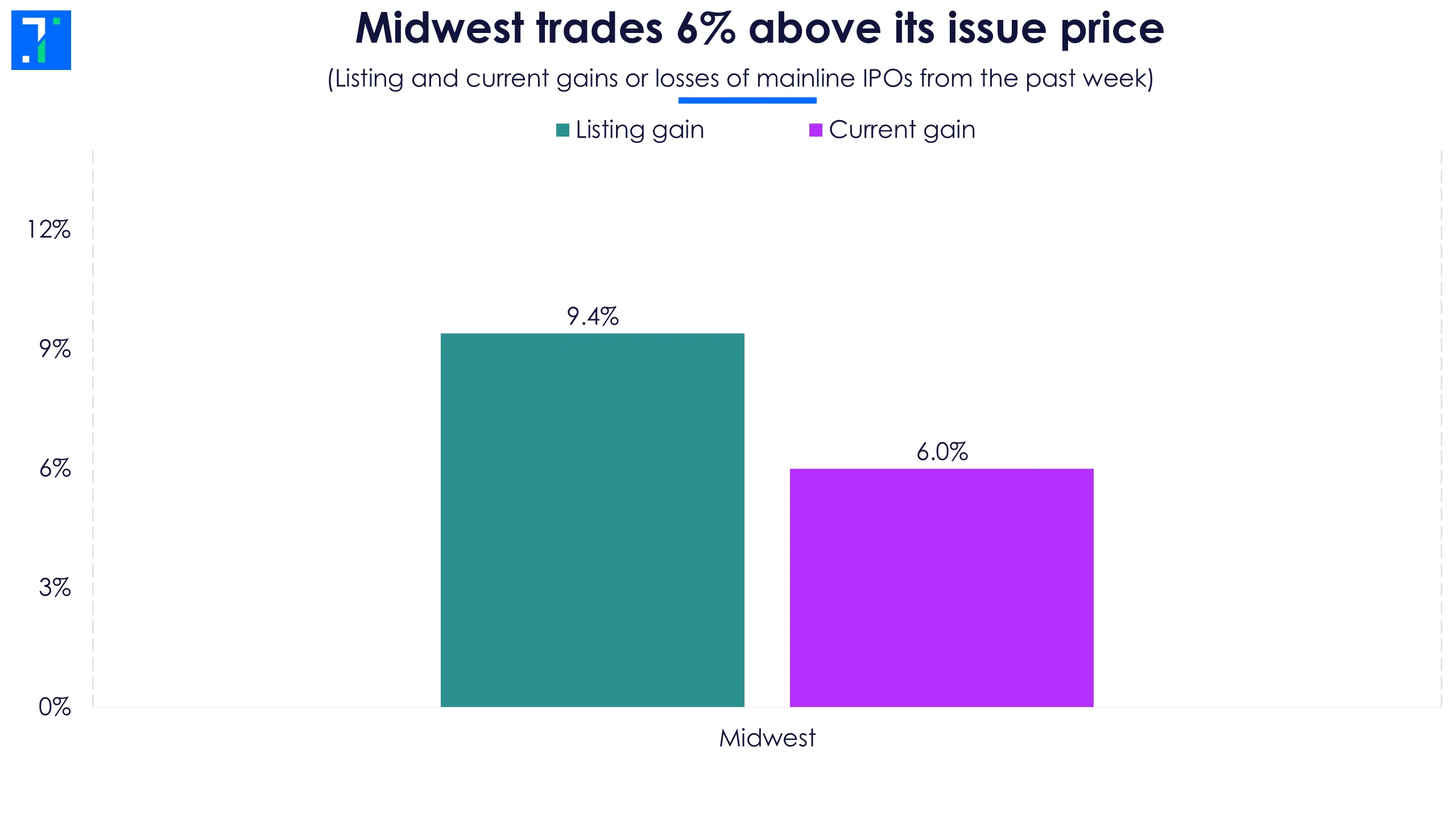 Midwest trades 6% above its issue price
