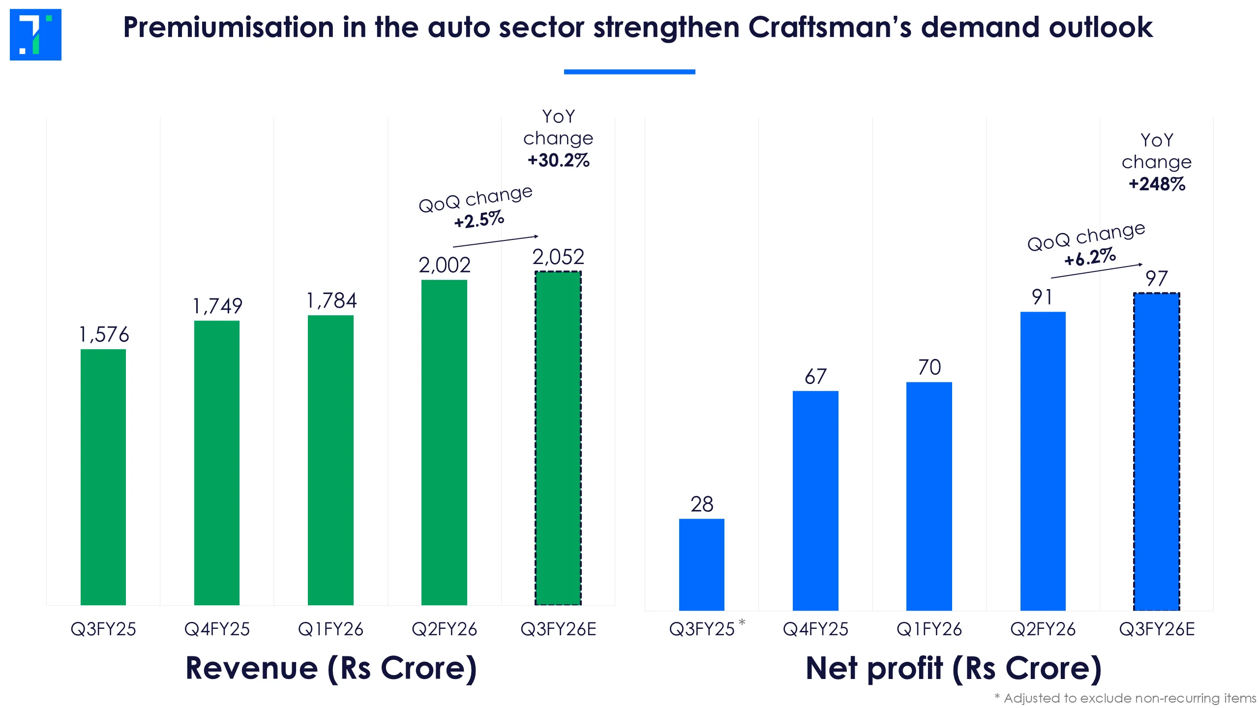 Craftsman Automation is a diversified engineering company operating across automotive powertrain components, precision machining, etc. It supplies OEMs for passenger vehicles, tractors, and commercial vehicles.
