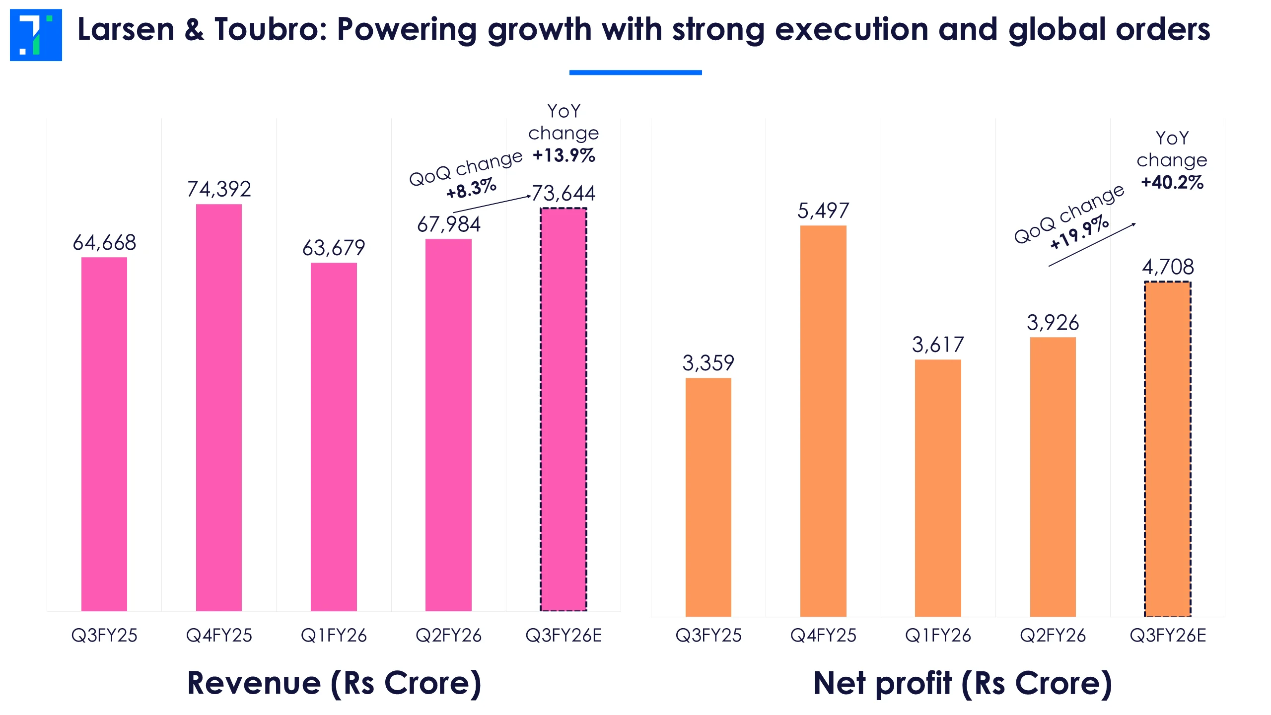Larsen & Toubro (L&T), India's engineering and infrastructure giant, reported strong revenue growth in Q2, with sectors like Hydrocarbon, Precision Engineering, and Heavy Engineering growing fast. International revenues now account for a significant share of the total.