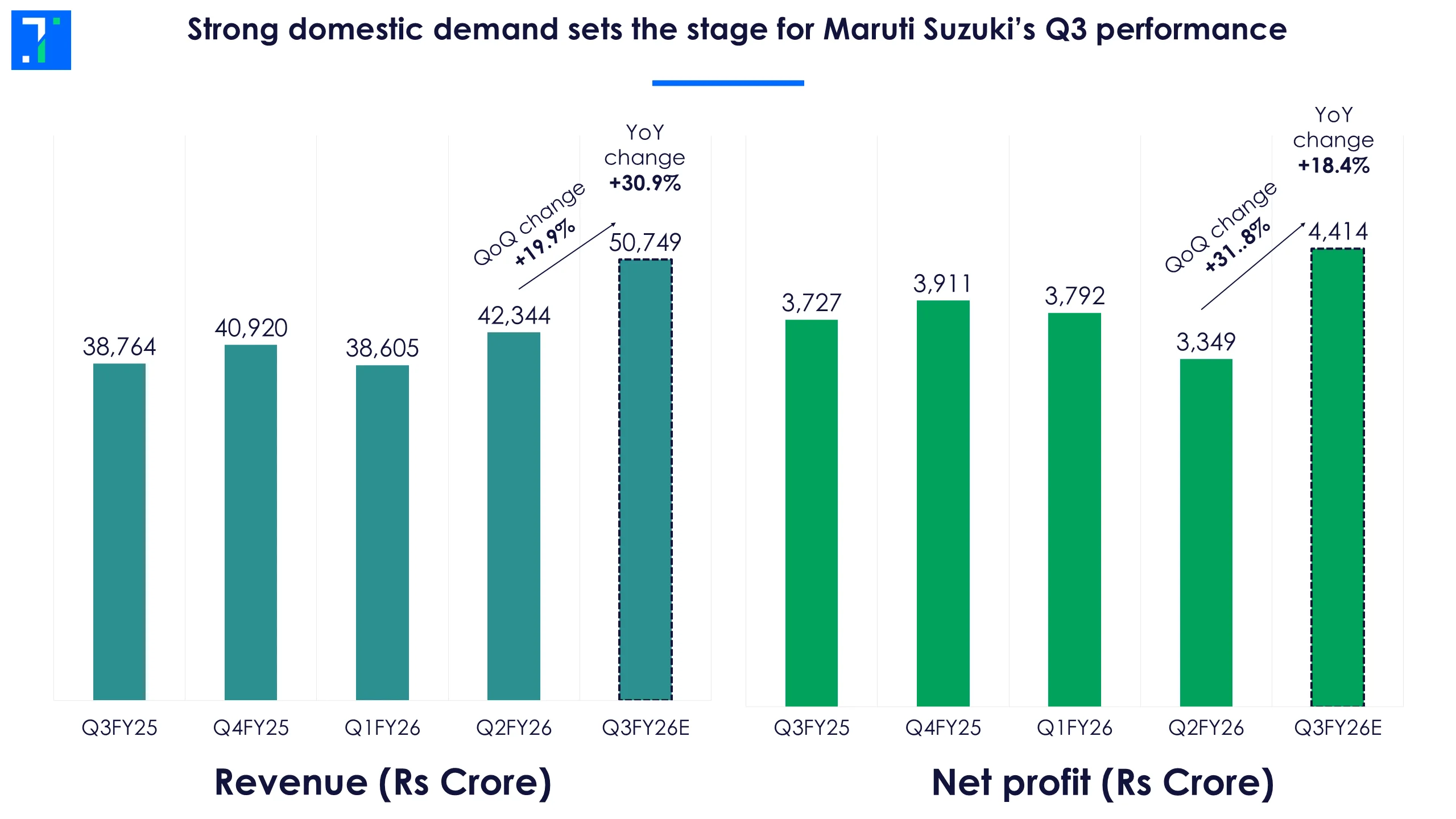 Maruti Suzuki is entering 2026 with solid momentum. Passenger vehicle volumes grew 37.3% YoY in December 2025, driven by strong domestic demand.