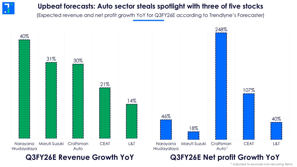 We shortlist five stocks from the Nifty 500 that are expected to post high revenue and net profit growth YoY and QoQ in Q3FY26 results, according to Trendlyne’s Forecaster. These companies have already set the bar high with strong Q2 results.