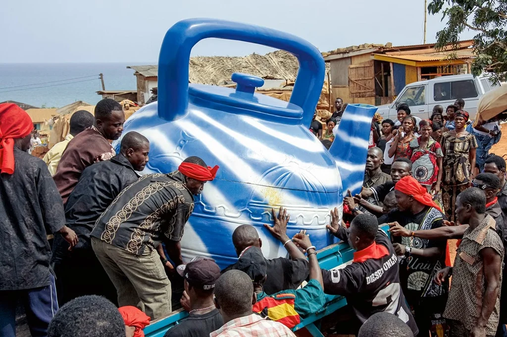 The people of Ghana say that one must "celebrate death as we celebrate life". Their funerals are colorful, loud affairs, and include coffins shaped like pineapples, teapots, and Coca Cola bottles.